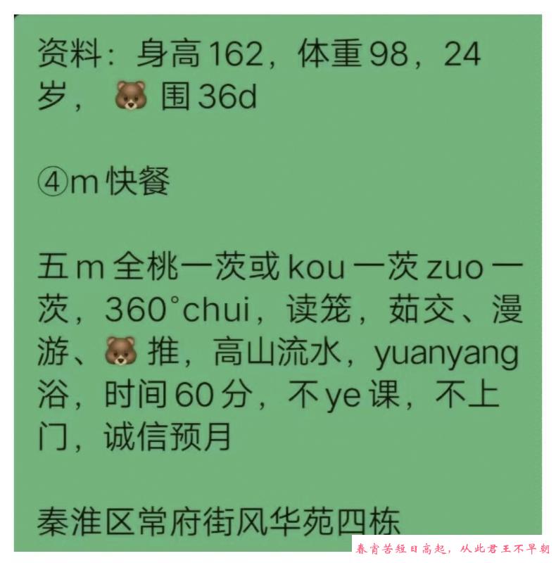 栖霞丽丽闺蜜,靠的近,下雨就约好时间,没什么人找她,两次玩了一个多小时也没催,偏瘦,腿长,喜欢玩腿的